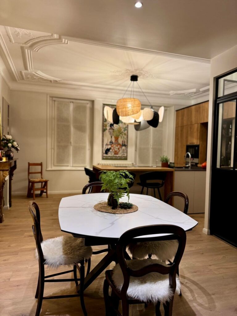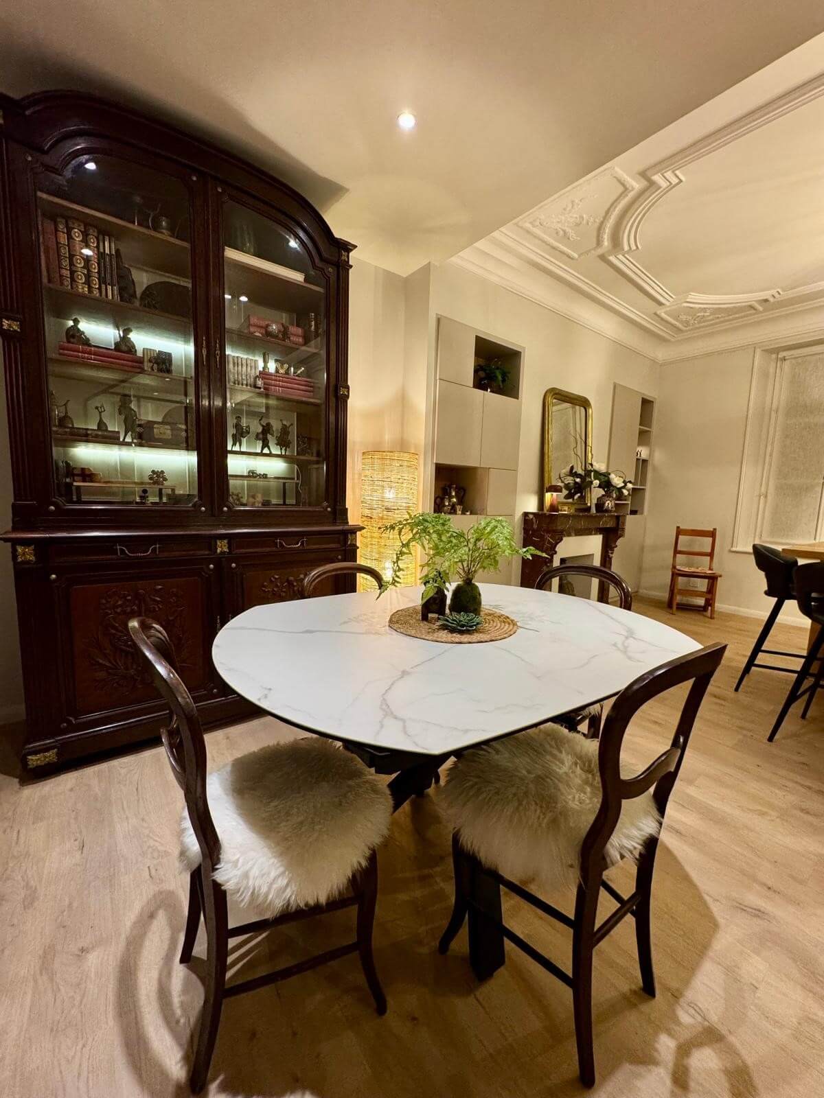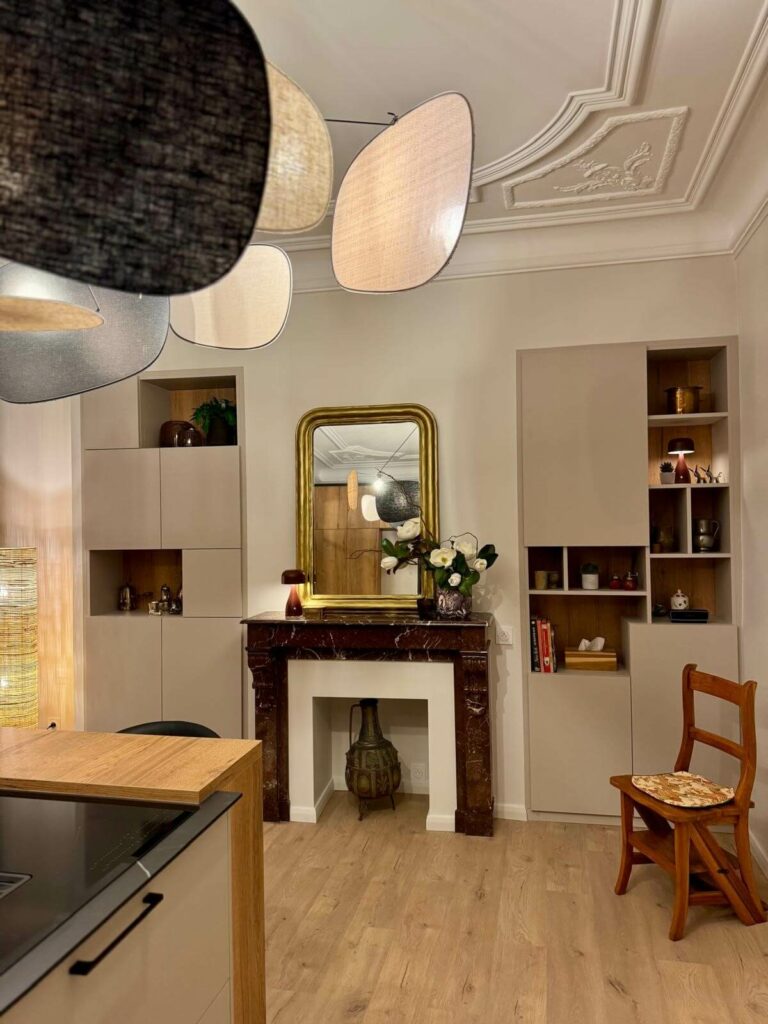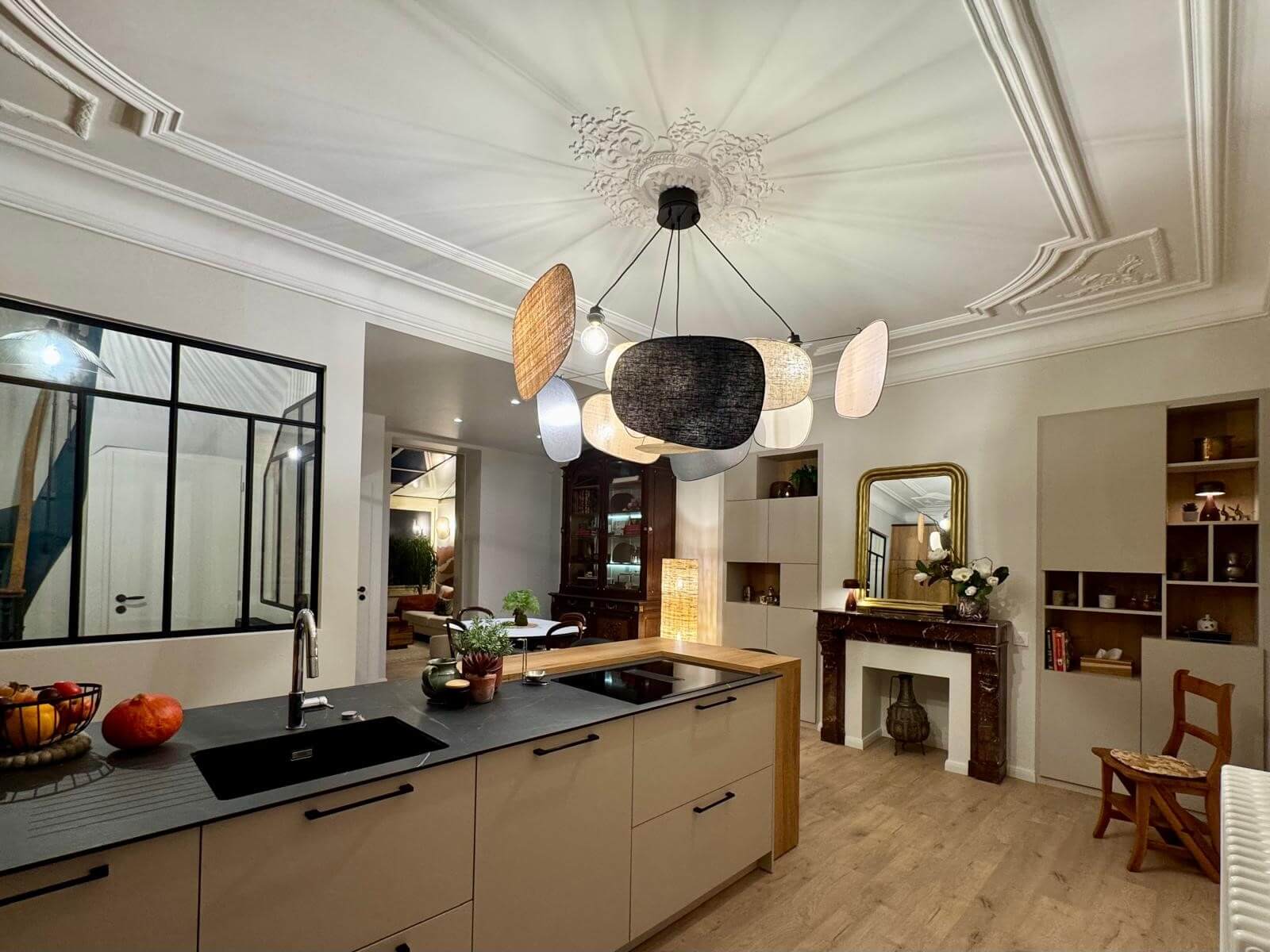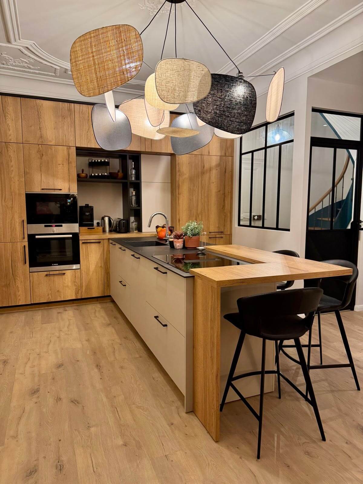 Cette cuisine est le résultat d’un subtil mélange entre les éléments classiques et modernes, de lignes épurées et d’une palette de couleurs neutres et apaisantes. Nous avons créer un ensemble cohérent et raffiné qui évoque une époque révolue tout en s’adaptant aux besoins fonctionnels contemporains. Les éléments rétro apportent un sentiment de chaleur et de confort, évoquant des souvenirs et créant une atmosphère accueillante.