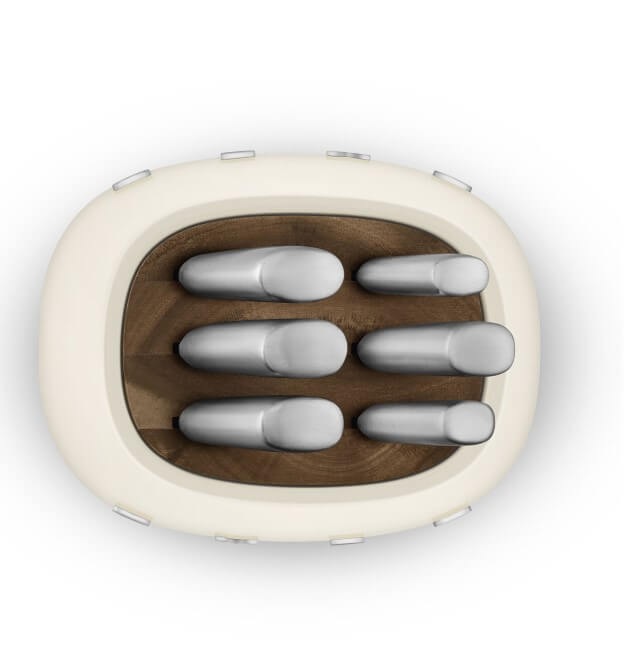 • 6 couteaux exclusifs inclus : un couteau à légumes, un couteau utilitaire, un couteau à viande, un couteau Santoku, un couteau à pain et un couteau de chef