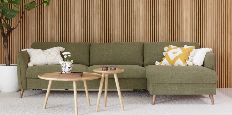 Personnalisez ce canapé-lit moderne avec un large choix de tissu, cuir, ainsi qu’avec une piètement métallique ou bois dans différent coloris.