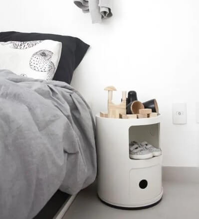 Le Componibili va vite connaitre un succès grandissant grâce à son extrême fonctionnalité. Compact et versatile, il se glisse dans toutes les pièces de la maison, par terre ou sur un meuble. Il répond à plusieurs fonctions : table de nuit dans la chambre, table d’appoint dans le salon, petit rangement dans la salle de bains ou la cuisine, tabouret si besoin…