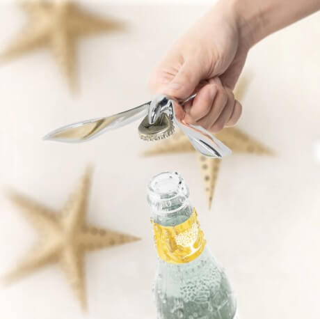 L’élégant oiseau aux ailes largement déployées tient en équilibre tout seul sur son bec, comme par magie. D’une simple pression du doigt, vous le mettez en mouvement, vous le laissez se balancer doucement d’un côté à l’autre et tournoyer sur son support en forme de cône. C’est seulement quand vous décapsulerez la première bouteille que vous révélerez le secret de sa fonction cachée.