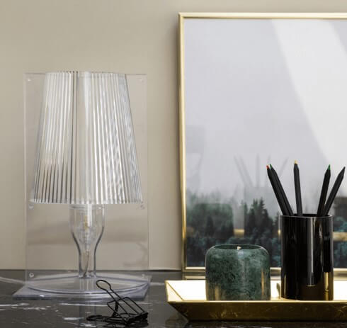 • Matière : Structure : polycarbonate teinté dans la masse – Assise : polyuréthane recouvert de tissu (59% viscose, 4% coton, 14% lin, 23% polyester)