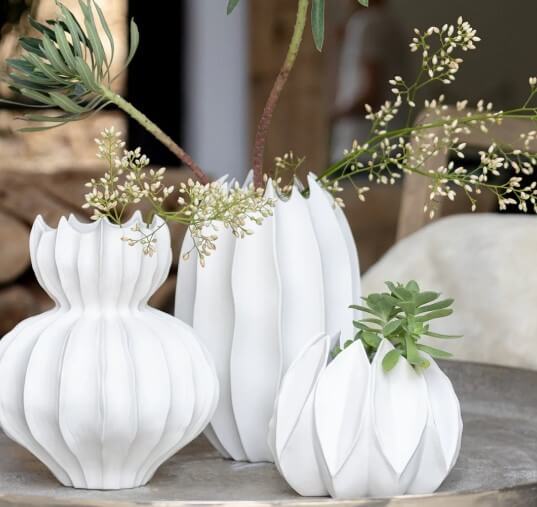 Utilisation de la porcelaine de biscuit pour obtenir cet aspect mat au toucher de la matière.