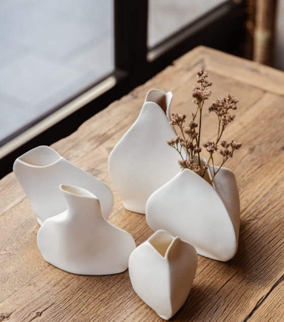 L’imperfection imparfaite. Voici ce que cherchait à illustrer Roos Van de Velde lorsqu’elle a imaginé pour Serax cette collection de vases librement inspirée de la nature, véritable muse de l’artiste depuis ses débuts. En laissant place aux imperfections dans le processus de fabrication, elle livre une collection inédite de vases en porcelaine aux lignes poétiques et singulières. Mat à l’extérieur et émaillés à l’intérieur, vous pouvez y placer de l’eau pour y glisser des fleurs fraîches. Discrets mais bien décidés à ne pas passer inaperçus, ces petits vases en porcelaine sont parfaits pour ajouter une touche singulière et fleurie à votre intérieur.